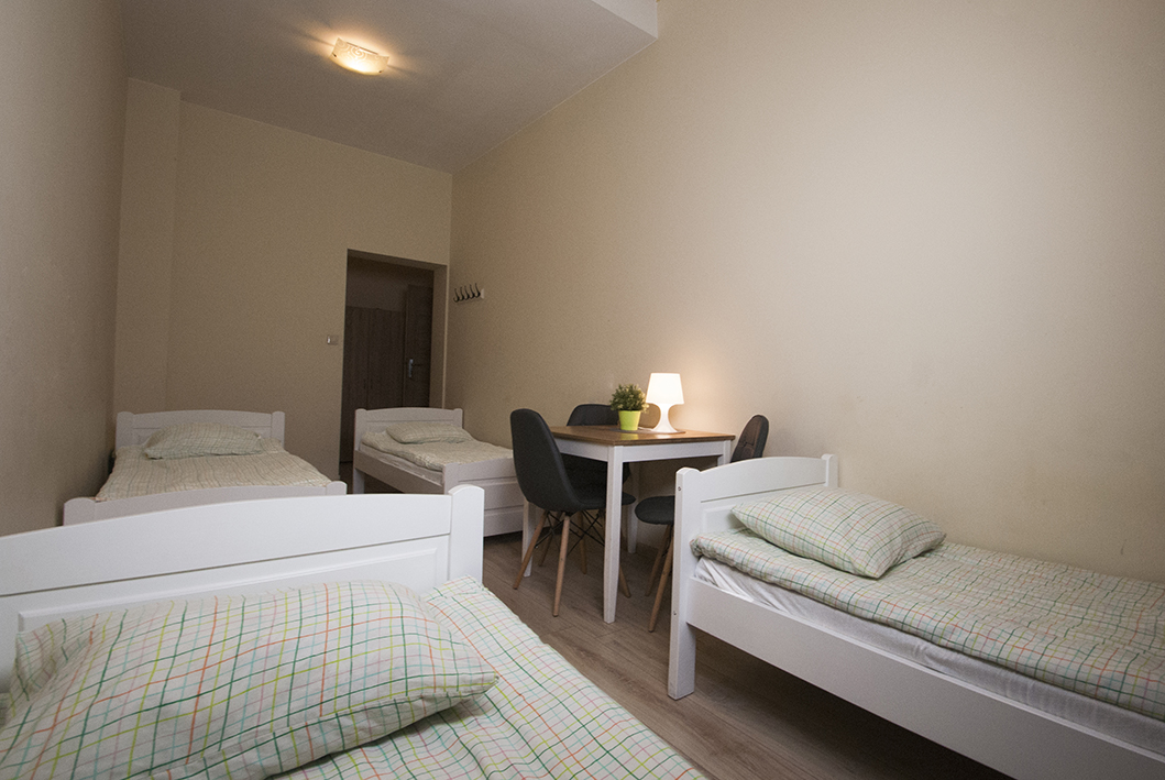 Czteroosobowy, przytulny pokój zapewniający komfortowy pobyt za sprawą 4 pojedynczych, wygodnych łóżek. Znajduje się w nim również stolik, przy którym Goście mogą spędzić swój wolny czas lub wspólnie zjeść. Na ścianie wisi telewizor z dostępem do telewizji kablowej.