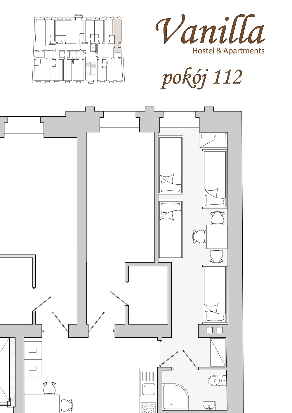 Obok znajduje się wspólny aneks kuchenny, dzięki któremu będą Państwo mogli samodzielnie przygotować posiłek. Zawiera podstawowe naczynia oraz niezbędny sprzęt – lodówkę, czajnik, mikrofalówkę oraz kuchenkę. Vanilla Hostel zapewnia tanie pokoje centrum Wrocław – idealne dla rodziny z dziećmi.