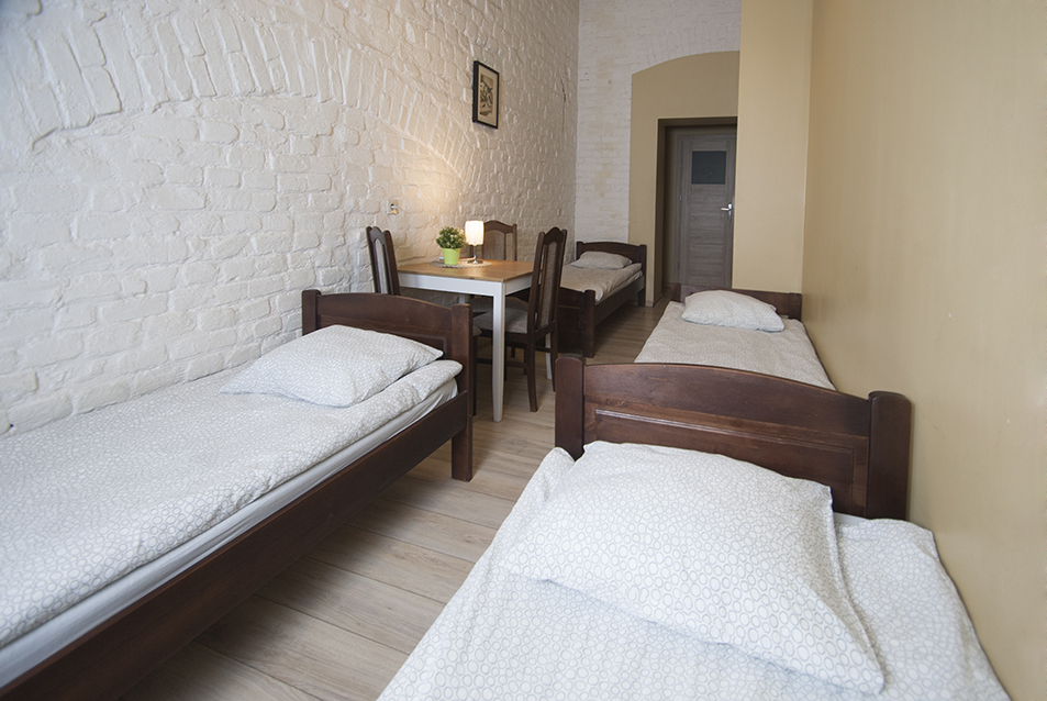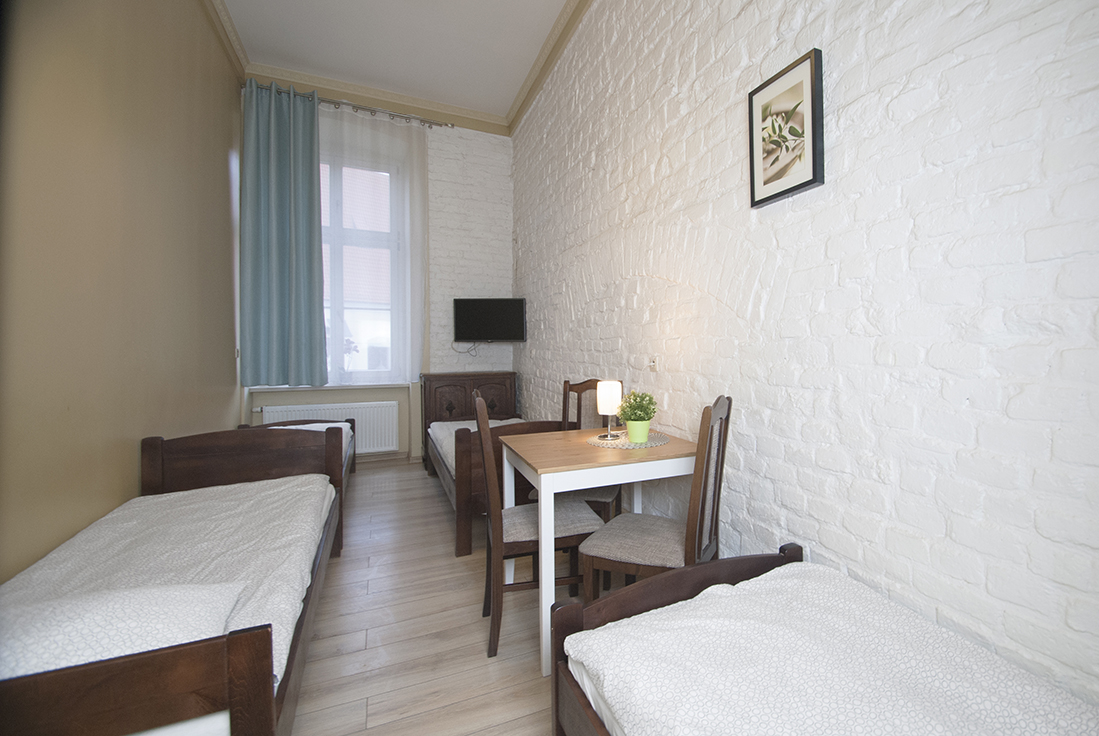Pokój idealny dla większej grupy znajomych lub pracowników. Schludne i zadbane pomieszczenie dysponuje 4 wygodnymi, pojedynczymi łóżkami oraz stolikiem. Dla Państwa wygody w pomieszczeniu znajduje się komoda do przechowania najpotrzebniejszych rzeczy a nad nią telewizor.