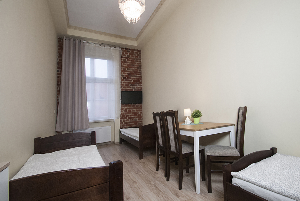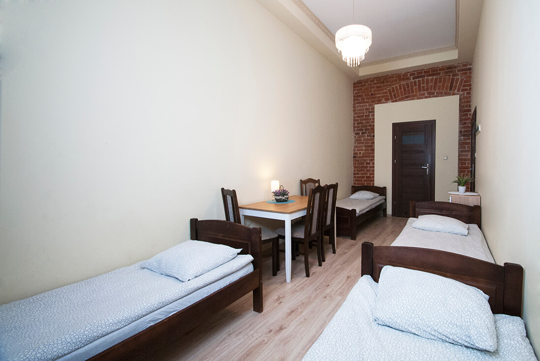 Widny, przestronny pokój idealny dla komfortowego pobytu 4 osób. W pomieszczeniu znajdują się 4 pojedyncze, wygodne łóżka. Pokój dysponuje także stolikiem wraz z 4 krzesłami do wspólnych posiłków lub spędzania wolnego czasu.