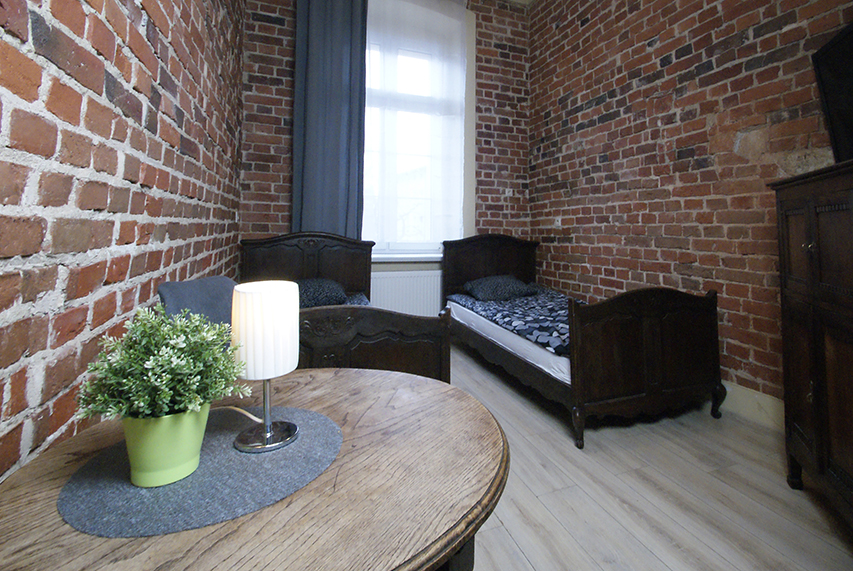 Pokój utrzymany w antycznym, oryginalnym stylu. Przeznaczony dla dwóch osób, które komfortowo przenocują w naszym hostelu. Pokój dysponuje dwoma wygodnymi, pojedynczymi łóżkami. Duże okno sprawia, że pomimo niewielkich rozmiaru pomieszczenia, wpada do niego dużo światła. Dzięki temu pokój jest widny i przytulny.