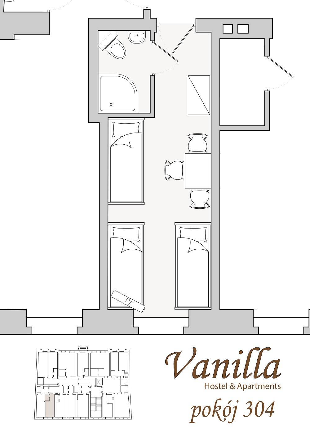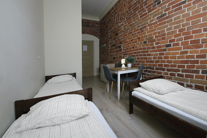 Schludne, jasne pomieszczenie sprawia bardzo pozytywne wrażenie – można poczuć się jak u siebie w domu. Ceglana ściana dodaje natomiast niepowtarzalnego klimatu, charakterystycznego dla Vanilla Hostel&Apartments.