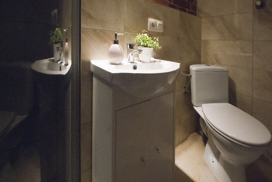 Pokój z łazienką dla 3 osób – wyposażona jest w WC, umywalkę oraz kabinę prysznicową.